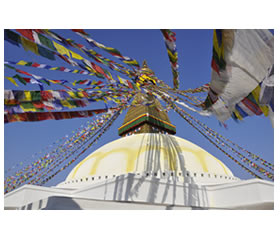 早餐后乘坐班机飞往尼泊尔首都加德满都。抵达后游览参观始建于2000多年前的世界上最辉煌的佛教寺庙“斯旺那布”庙(Swayambhunath世界文化遗产,俗称“猴山”)【约1.5小时】,来这里祭祀的有尼佤尔尼姑、藏族喇嘛、佛教、印度教之贵族朝圣者,也许斯旺那布塔是观察尼泊尔各个宗教融洽相处的最佳地方。晚上观看当地民俗歌舞表演,进食风味独特的尼泊尔餐。 |